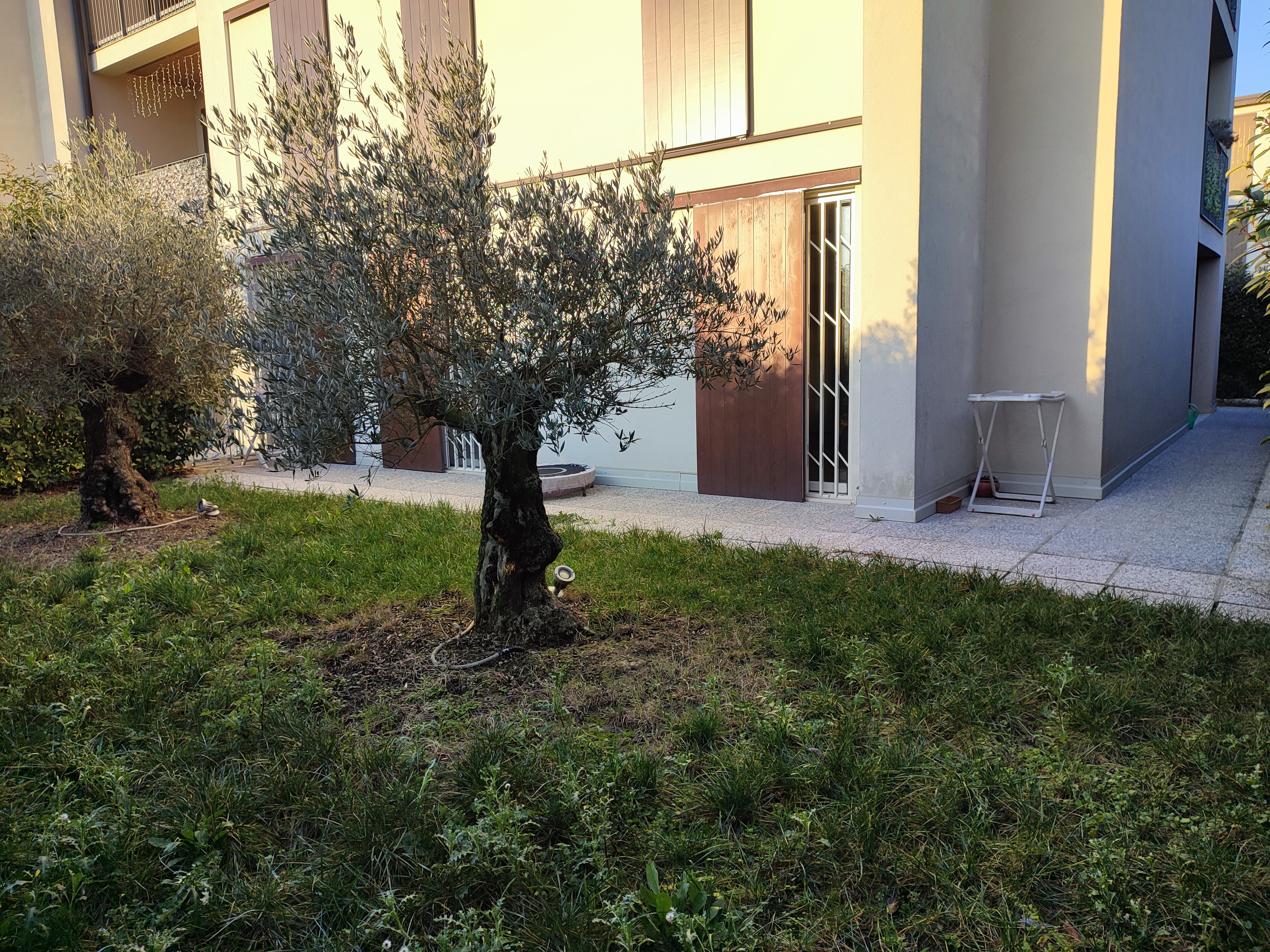 Lugo in elegante palazzina di recente costruzione edificata nel pieno rispetto delle normative sul risparmio energetico, ubicata in una delle zone residenziali più belle ed esclusive del paese immersa nel verde e ben servita da parcheggi pubblici, proponiamo in vendita un prestigioso appartamento di ampia metratura sviluppato tutto al piano terra e composto da ingresso su grandissimo soggiorno con cucina a vista, servito da un'ampia porta finestra di uscita sul grazioso loggiato che lo rende particolarmente luminoso, disimpegno, una camera da letto matrimoniale, due camere da letto singole e due bagni, oltre al posto auto coperto in corpo staccato. Completa il tutto un meraviglioso giardino di proprietà sviluppato sui tre lati dell'abitazione, impreziosito da due stupende piante di ulivi secolari. L'immobile, unico nel suo genere ed in condizioni di conservazione eccellenti, è rifinito con materiali di altissimo pregio qualitativo, completo altresì di impianto di aria condizionata in pompa di calore.